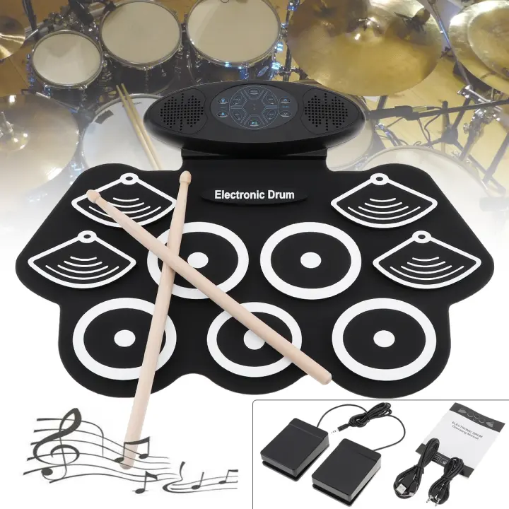 9 Pads Electronic Roll Up Thicken Silicone Drum Electric Drum Kit With Drumsticks And Sustain Pedal Lazada Ph Drum Set For 1 Year Old