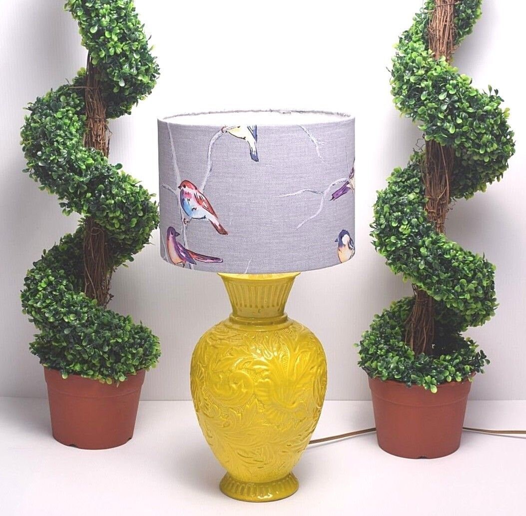 Yellow And Grey Fabric Lampshade Drum Table Floor Or Ceiling Pendant Lampshade Made In Fabric On Madeit Queensryche Drum Set