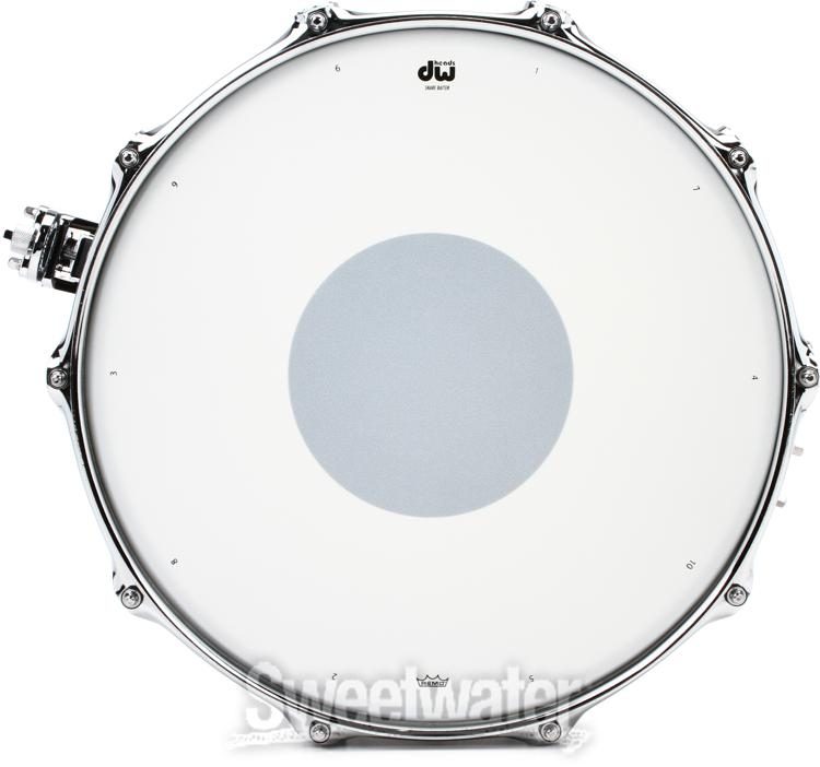 Dw Design Series Snare Drum 6 5 X 14 Black Nickel Over Brass Sweetwater Drum Set Logos